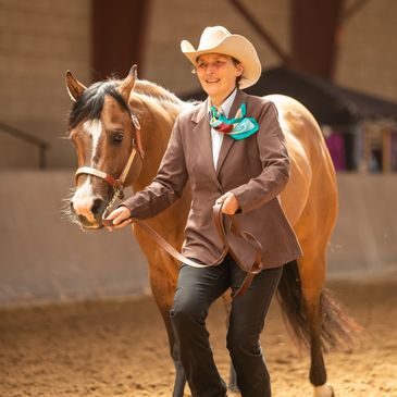"Finding we didn't quite fit in at quarter horse events, I found International Quarter Pony in 2022 and began my show journey with their organization. Riding primarily western, IQPA pushed me to try new things in their shows and we have now tried English and even crossrails. We've has some ups and downs but it has been the best adventure with my little red pony." ~ Andrea Wawrowski