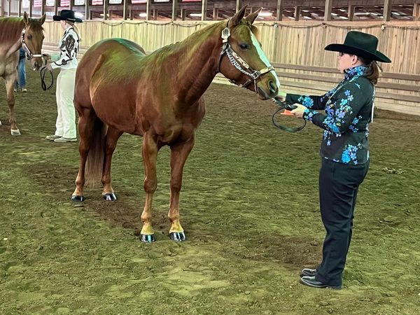 "Finding we didn't quite fit in at quarter horse events, I found International Quarter Pony in 2022 and began my show journey with their organization. Riding primarily western, IQPA pushed me to try new things in their shows and we have now tried English and even crossrails. We've has some ups and downs but it has been the best adventure with my little red pony." ~ Andrea Wawrowski